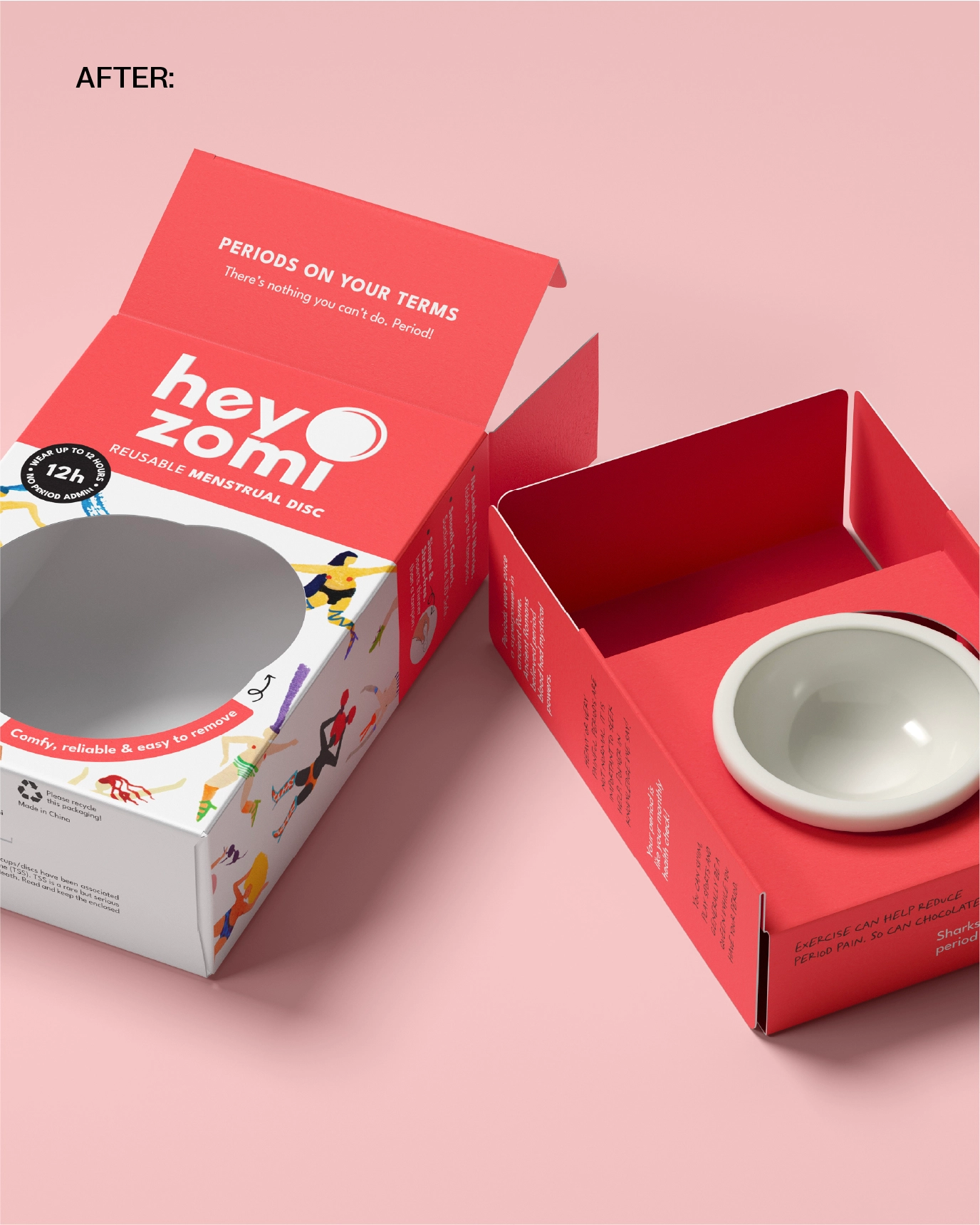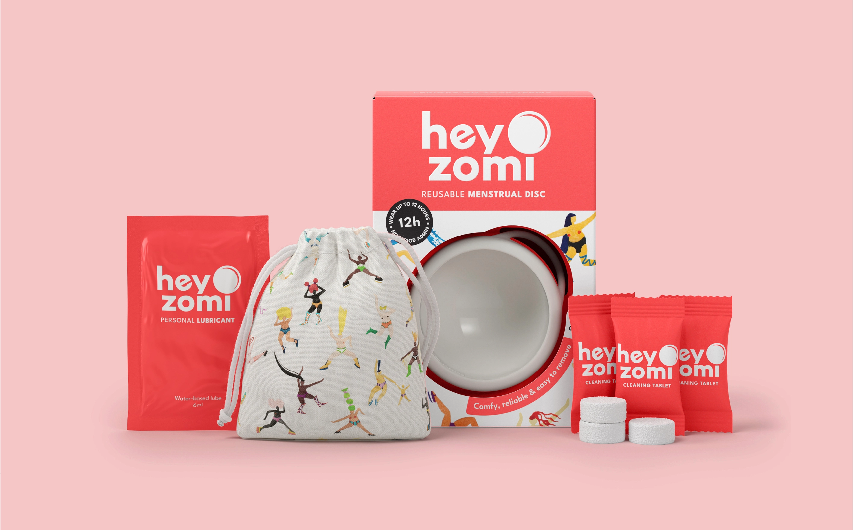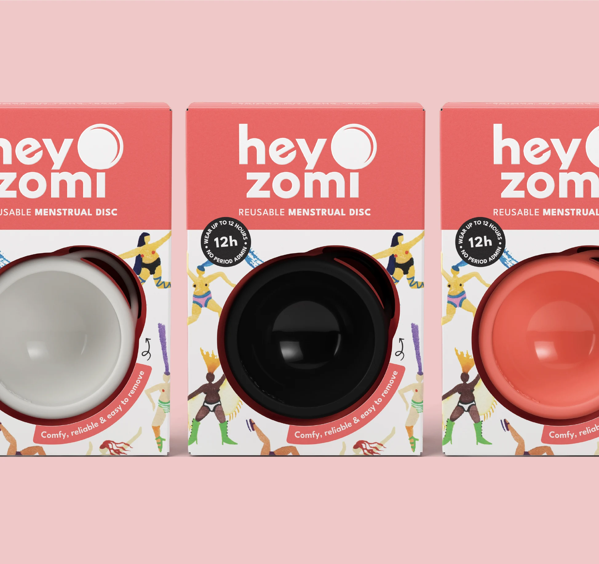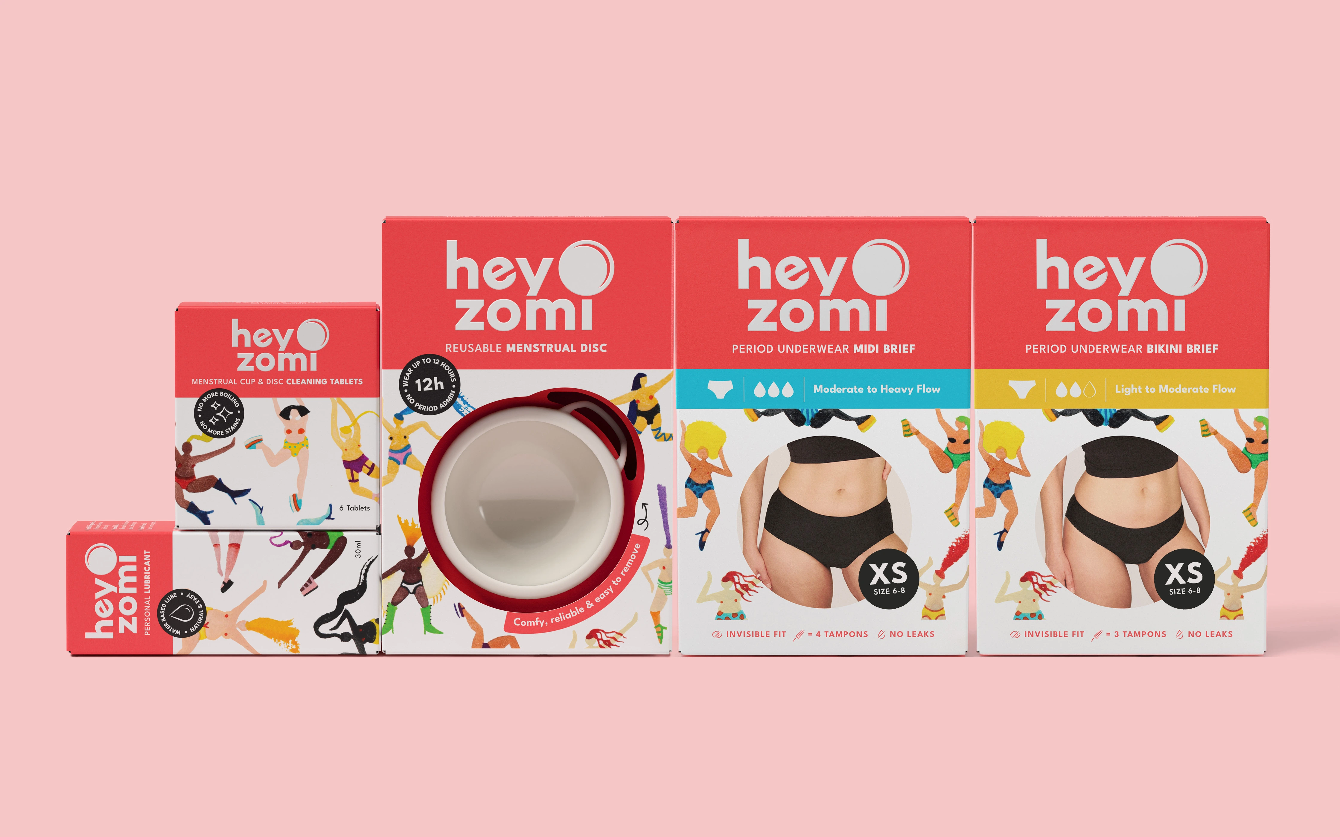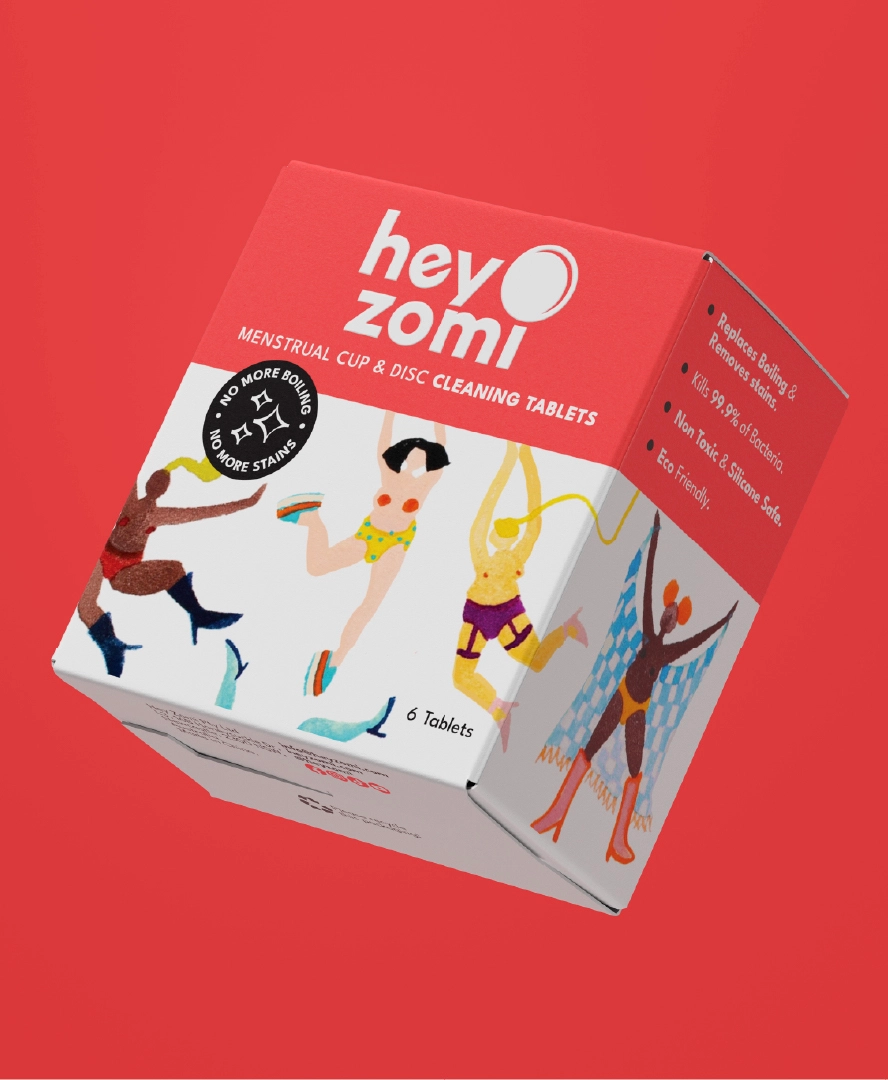 Depot was commissioned by Hey Zomi to design their FMCG packaging for their menstrual disc, a product that challenges convention and required packaging to do the same. The brief spanned cardboard engineering and brand architecture, with the ambition to create a system that performs at shelf while holding true to the brand’s values of sustainability, empowerment and radical openness around period care.